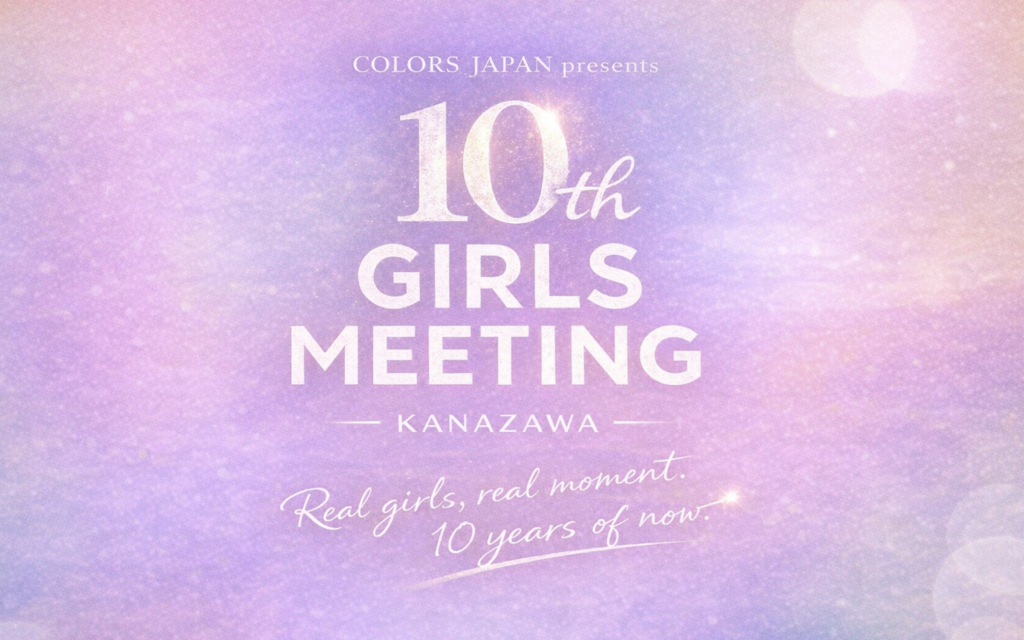 流行も、価値観も、若者の「今」はこの10年で大きく変わってきました。ファッション、ビューティー、エンタメ。その中心にいるのは、いつの時代も自分らしさを大切にする若者たちです。GIRLS MEETINGは、そんなリアルな感性や想いとともに、同じ時代を歩んできました。そして迎える10周年。これまでの「好き」や「憧れ」これから始まる新しい未来をつなぐ、特別な一日をお届けします。